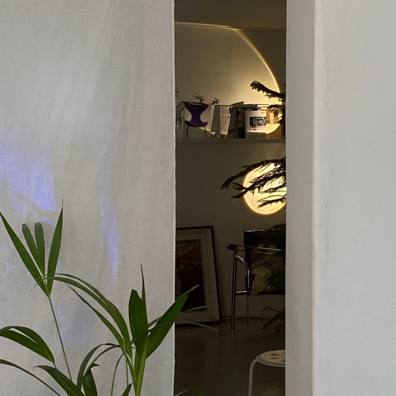 바닥이 평탄하지 못한 점은 큰 가구들의 배치로 가렸고, 천고가 낮고 협소한 내부 공간은 조명으로 공간감을 더해